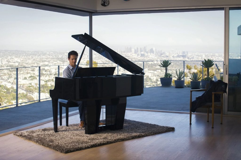 A breakthrough PentaDrive soundboard system replaces traditional speaker drivers with five transducers that channel sound through a large wooden soundboard, producing deep, resonant tone and immersive projection that mirrors an acoustic grand. The redesigned cabinet—with a deeper, curved profile and three-position top board—enhances both sound and aesthetics, while a grand-style adjustable music shelf completes the experience.